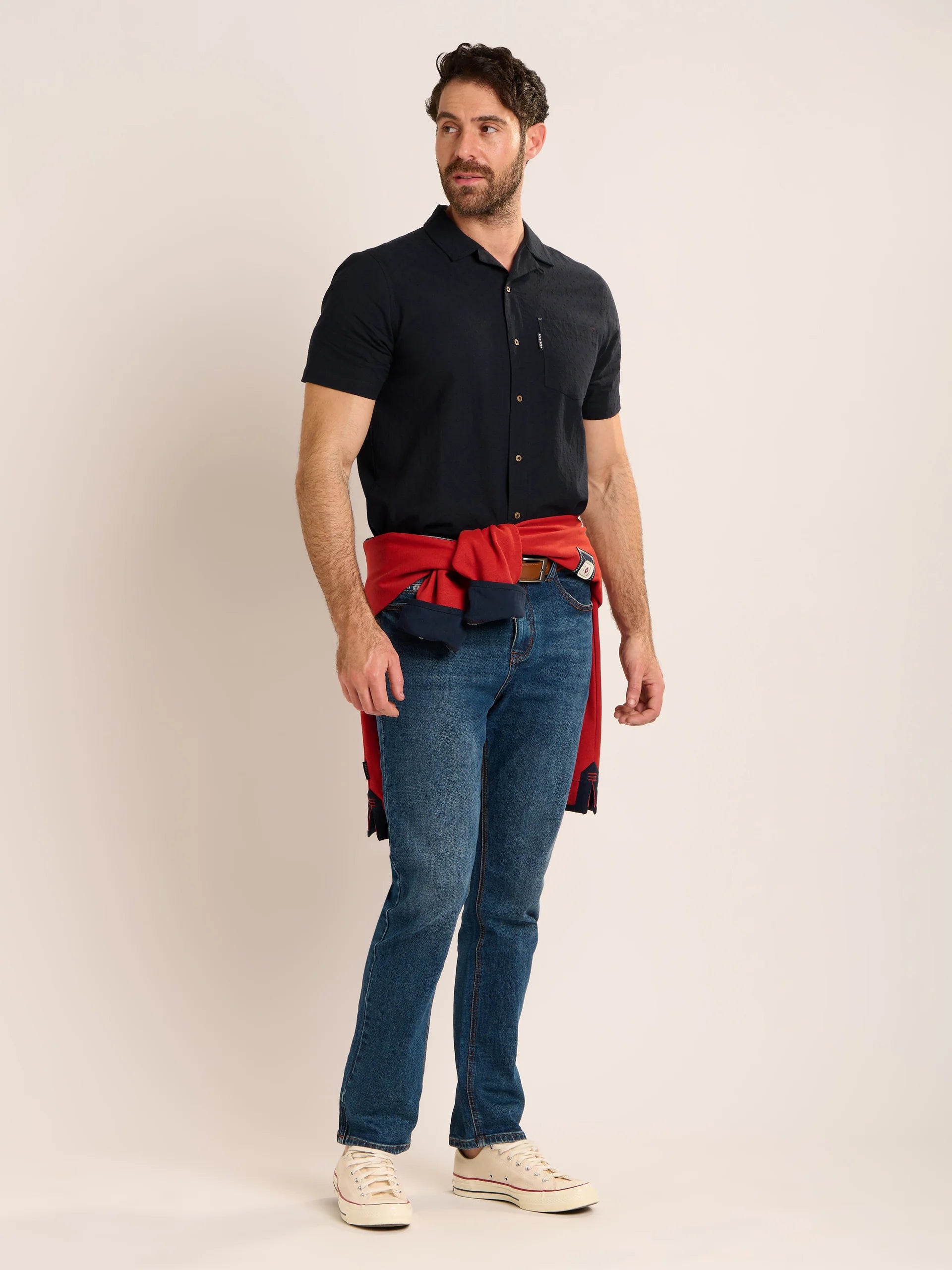 Lightweight, breathable, and easy to style. Brakeburn Slawston shirt made from textured woven cotton, with short sleeves and a relaxed fit for warm-weather. It features a resort collar for relaxed days or wear it buttoned up for a smarter look, alternatively, layered open over a tee for laid-back days.
