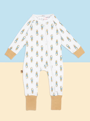 Bring story-book charm and cosy comfort together with this Blade and Rose official Peter Rabbit™ Neutral Romper Jumpsuit. Made for the tiniest explorers, this romper is designed to make play, naptime and cuddles all extra special. In a soft oatmeal / beige-toned neutral that mixes and matches easily, it features the iconic Peter Rabbit™ motif and all the thoughtful details you expect from Blade & Rose.