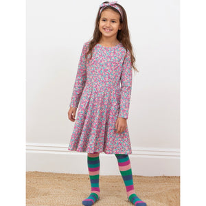 The Kite whirling, twirling skater dress with handy scoop pockets, created in the pink Ditsy tales print, ticks all the boxes. Made in soft organic cotton jersey with a little bit of stretch for great drape and next-to-skin softness. You can find this Kite print across our range for lots of mix and match options.