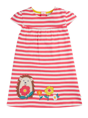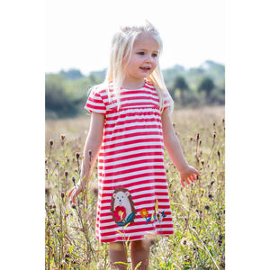 Get ready to hop into springtime adventures with the Frugi Little Layla Dress. Featuring fab Breton stripe designs and fun appliqué characters, this short-sleeved baby and toddler dress has a sweet, gathered empire seam and popper fastenings on the back to help make dressing times wriggle-free. Plus, this GOTS certified dress is crafted from 100% organic cotton to ensure it's super-soft and snuggly against the skin.