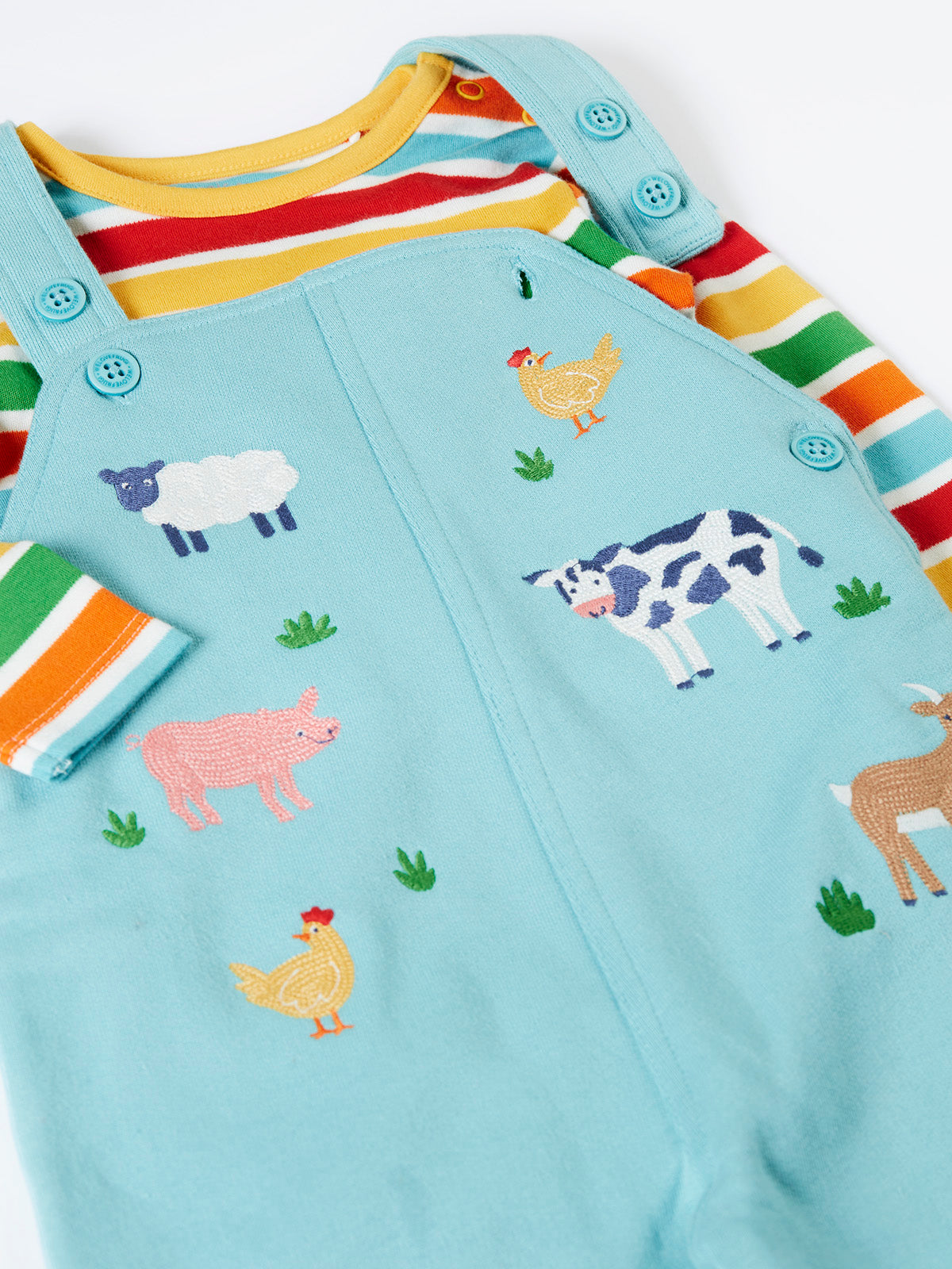 Ready for any adventure, the Frugi Rae Dungaree Outfit is a super soft, breathable two-piece set bursting with bright Frugi fun. With adjustable button fastening straps on the dungarees made from cosy organic cotton and a long-sleeved body that’s easy to pop on and off, it’s perfect for little explorers on the move!