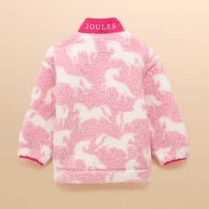 Snuggle up in softness with the Joules Tilly fleece. A cosy layer made for chilly-day adventures and sofa snuggles. Designed with a funnel neck for added warmth and a quarter zip fastening for easy on-and-off, it’s as practical as it is adorable. Featuring a cute all-over design, handy pockets, and Joules embroidery at the back neck, this fleece brings both fun and functionality to her everyday wardrobe. Soft fleece fabric for warmth and comfort. Funnel neck with quarter zip fastening. Two side pockets. All-over playful print. Joules embroidered branding at back neck.