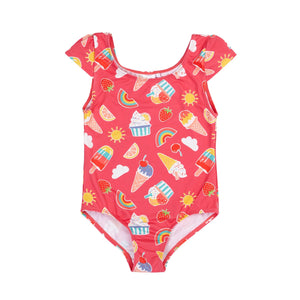 Get ready to make a splash in the Frugi Marina Swimsuit! With pretty capped sleeves to protect little shoulders from the sun’s rays, this swimsuit has a colourful Frugi print and comfy elasticated leg openings.