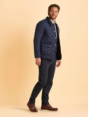 Contemporary tailoring meets classic styling in this Brakeburn men’s Taplow Quilted Jacket - a must have for your winter wardrobe. Featuring a neat quilted design, corduroy collar, adjustable cuffs, two flap pockets and popper fastenings. Style with relaxed fit jeans and Chelsea boots.