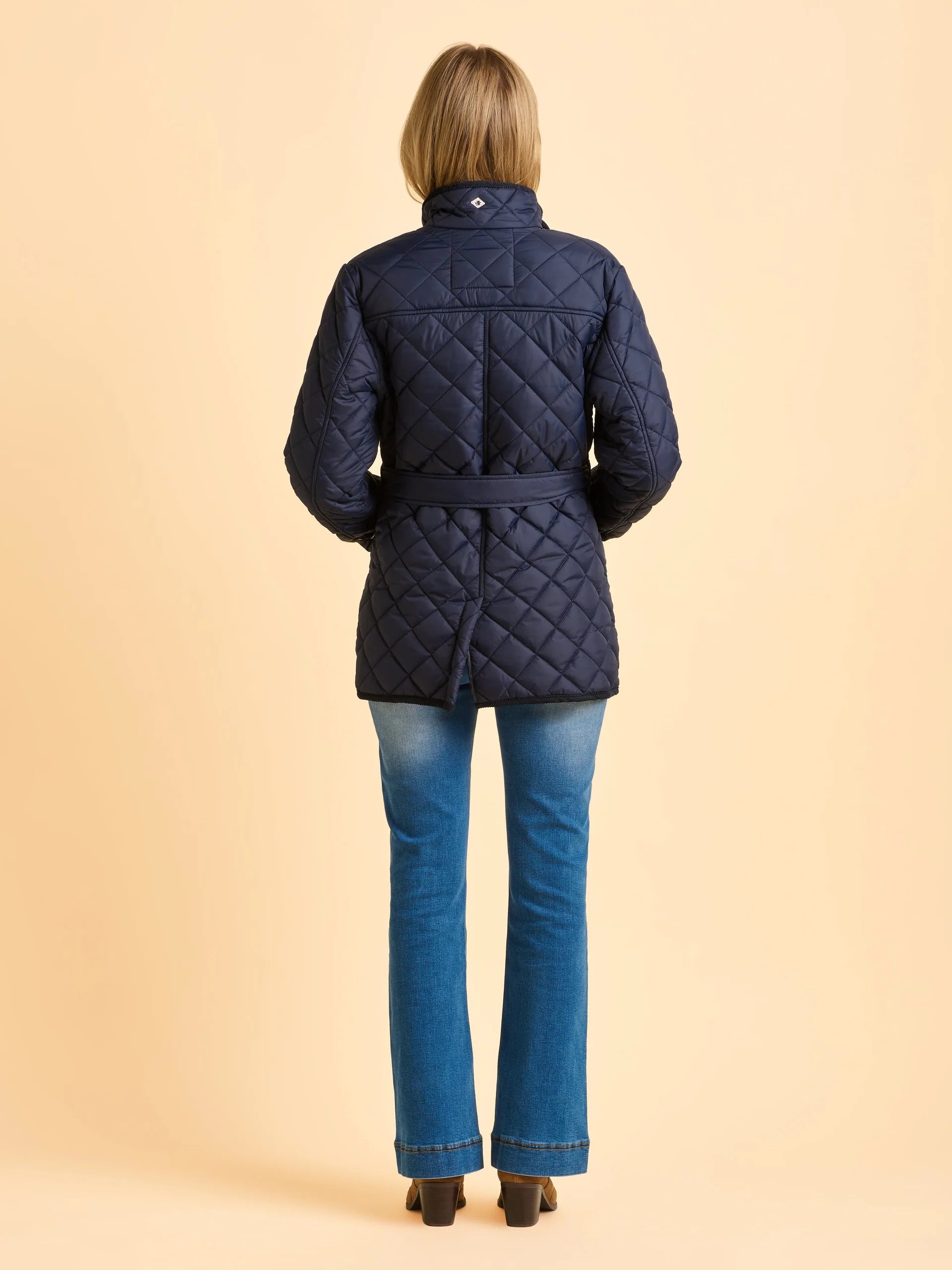 This Brakeburn women’s Flurry Jacket is the ultimate cosy quilted coat for comfort on cooler days. With a regular fit, it features a diamond quilted pattern, four deep pockets, a waist tie, and both zip and popper fastenings. Layer over a chunky knit and corduroy trousers.